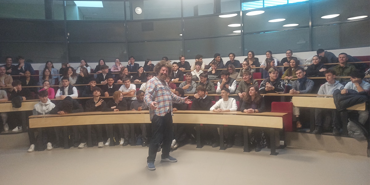 Ce jeudi 16 octobre, plusieurs classes des Écoles de la CCI Dordogne ont assisté au spectacle « Complètement fumé », un seul en scène humoristique interprété par Mathieu Ducrez, qui