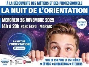 Le mercredi 26 novembre 2025, de 14h à 20h, la CCI Dordogne organise une nouvelle édition de la Nuit de l’Orientation au Parc des Expositions du Périgord à Marsac-sur-l’Isle.