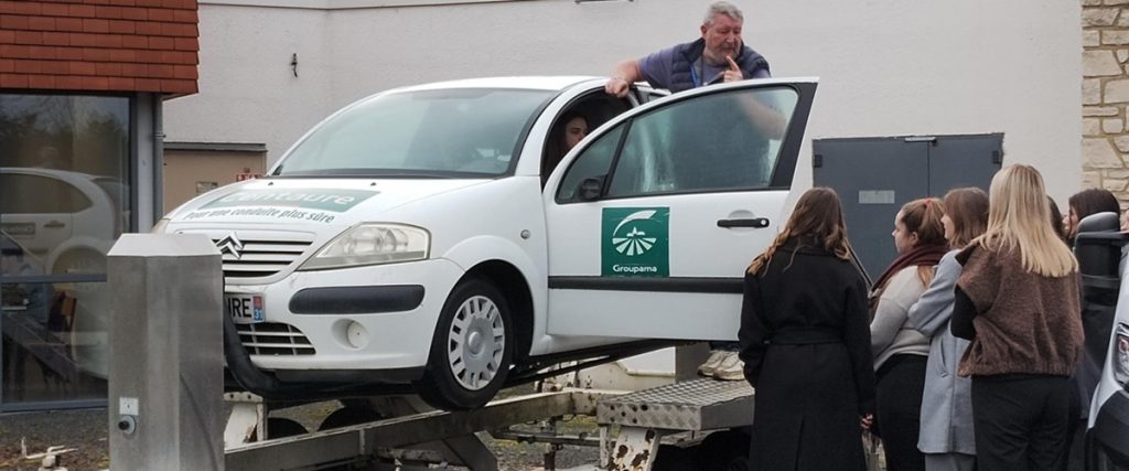 Le 5 février, nos Écoles ont accueilli sur le campus de Boulazac une opération de prévention routière avec la voiture tonneau de notre partenaire, Groupama Dordogne. Grâce à cette animation avec le véhicule du réseau Centaure et de Groupama, nos apprenants ont vécu une expérience immersive pour mieux comprendre les enjeux de la sécurité routière et les risques liés aux conduites addictives.